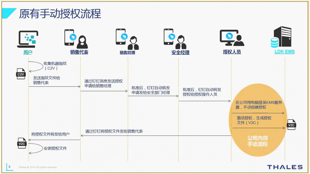 客户是提供计算机仿真软件与方案的公司。从2018年起使用阿里钉钉(DingTalk)的办公自动化系统,用于内部邮件、出差申请、费用报销、通信以及各种工作流程的管理。在软件保护与授权方面也是使用圣天诺LDK软授权方案。
